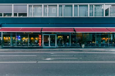 Hanzō Lyngby is the restaurant located at the corner of Lyngby Hovedgade and Toftebæksvej. You can't miss us - we're the one with the red neon sign, yellow walls, and orange ceilings.