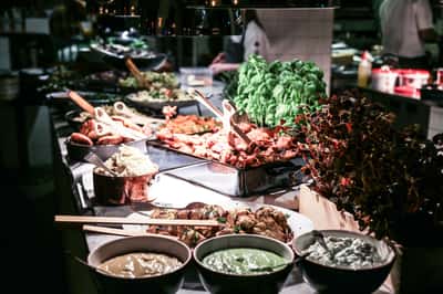 At Food Club, you simply choose your arrival time, and the buffet and drinks are included. For an extra festive touch, we've added a welcome drink and two cocktails for the evening.