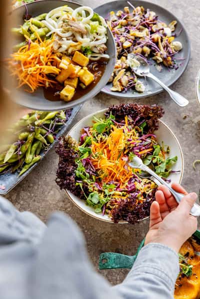 Alle tre vegetariske frokostordninger kan selvfølgelig kombineres med en frokost med kød, og I kan nemt skifte mellem vores tre frokoster, så du og dine kollegaer kan smage de vidt forskellige køkkener.
