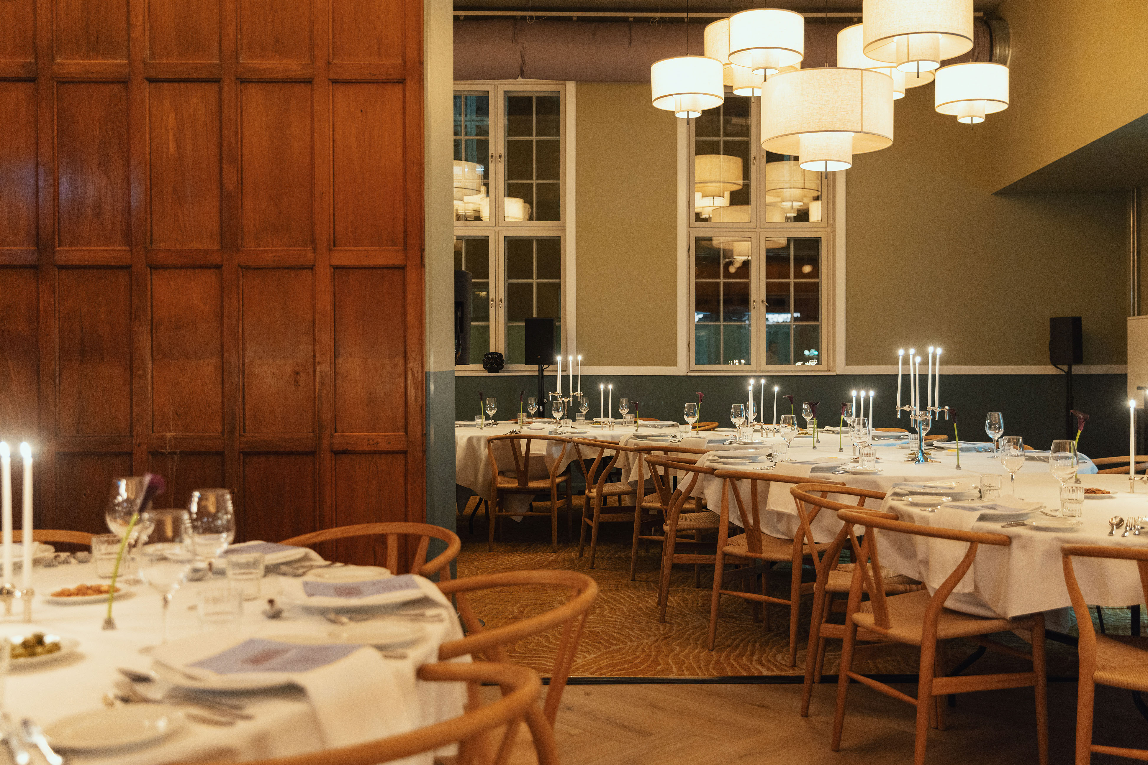 Historiske selskabslokaler og restaurant i Aarhus C med fleksible rum med plads til op til ca. 250 siddende gæster fordelt på flere lokaler.